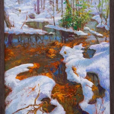 Complete painting wet-on-wet in a single session, using direct mixing, decisive strokes, and limited overpainting.