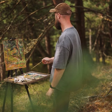 Outdoor painting faces variable light, environment, and time constraints; demands portability and quick decisions.